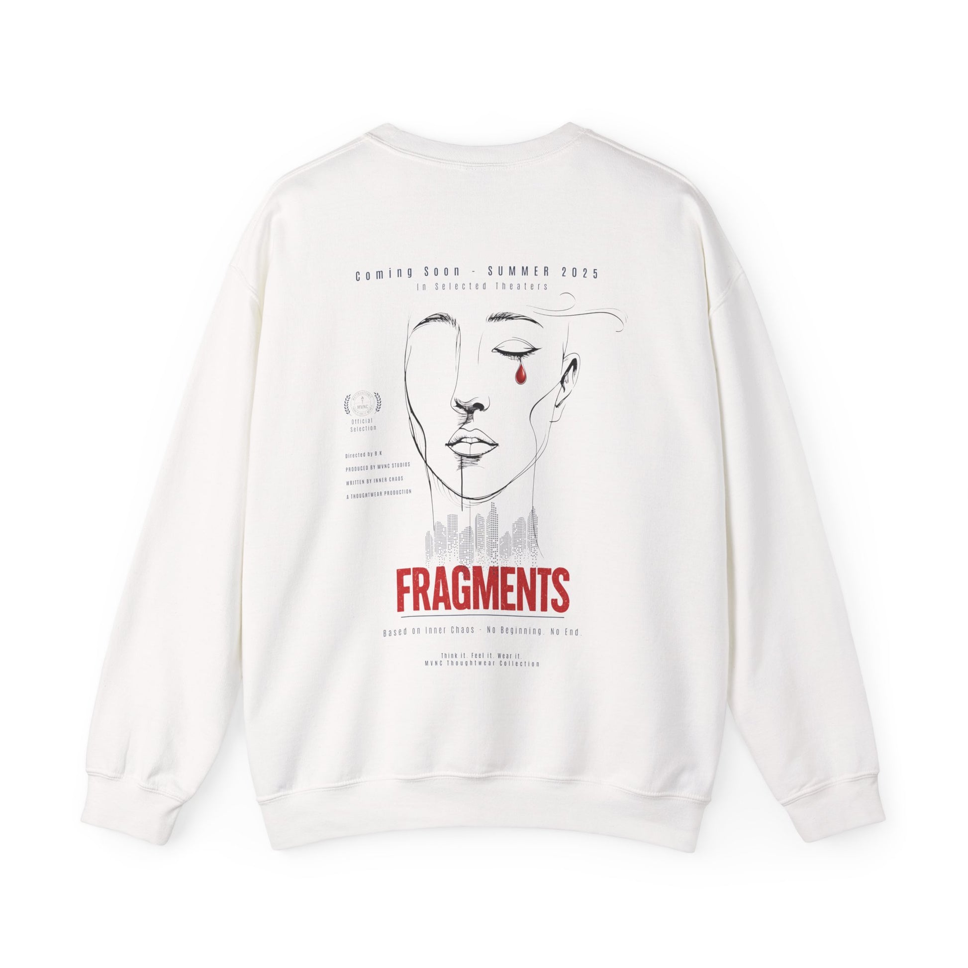 This sweatshirt combines cinematic aesthetics with profound symbolism —a tear of chaos, the silent scream of the city, and the reflection of inner struggle. Inspired by urban nights and timeless movie posters, this piece is more than clothing; it's a statement.