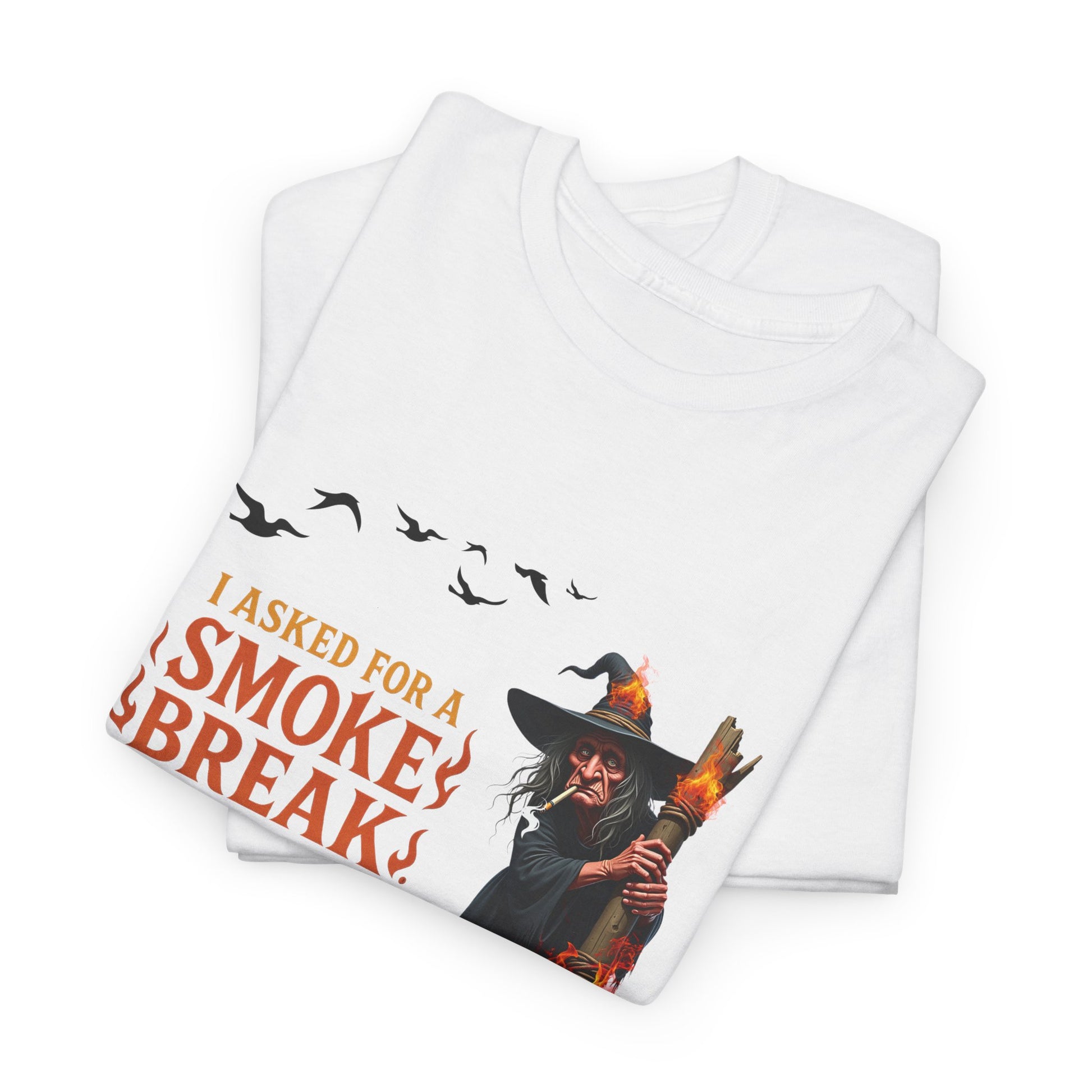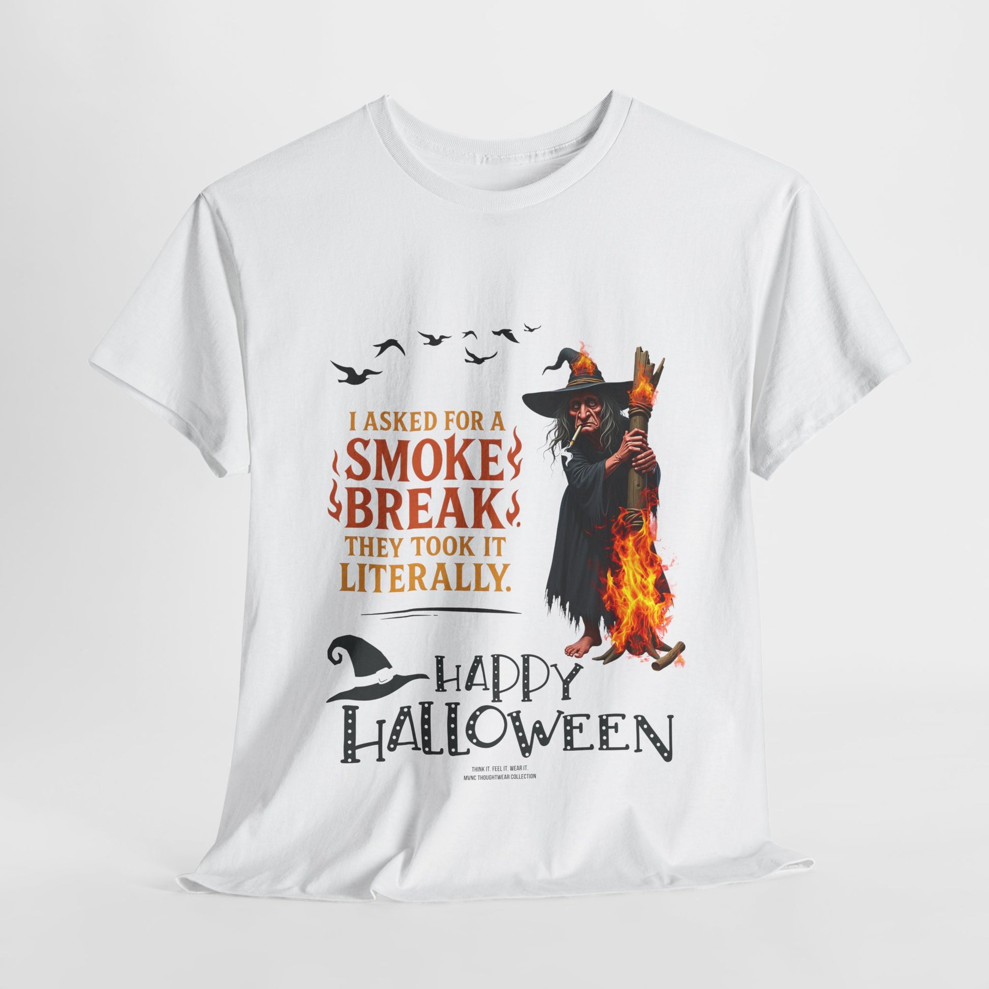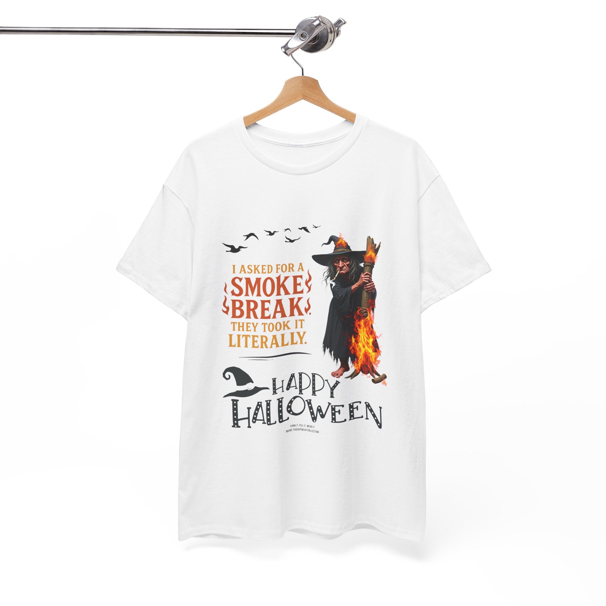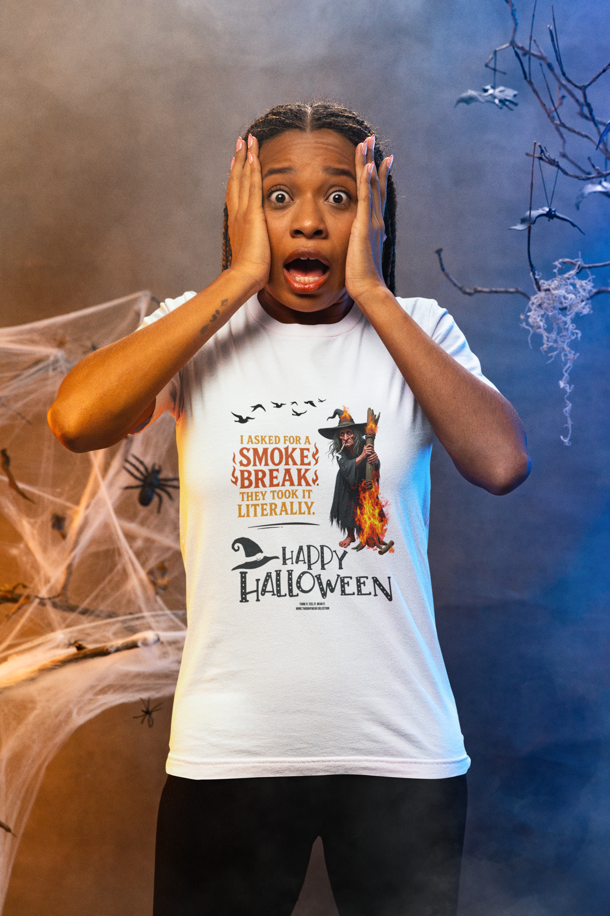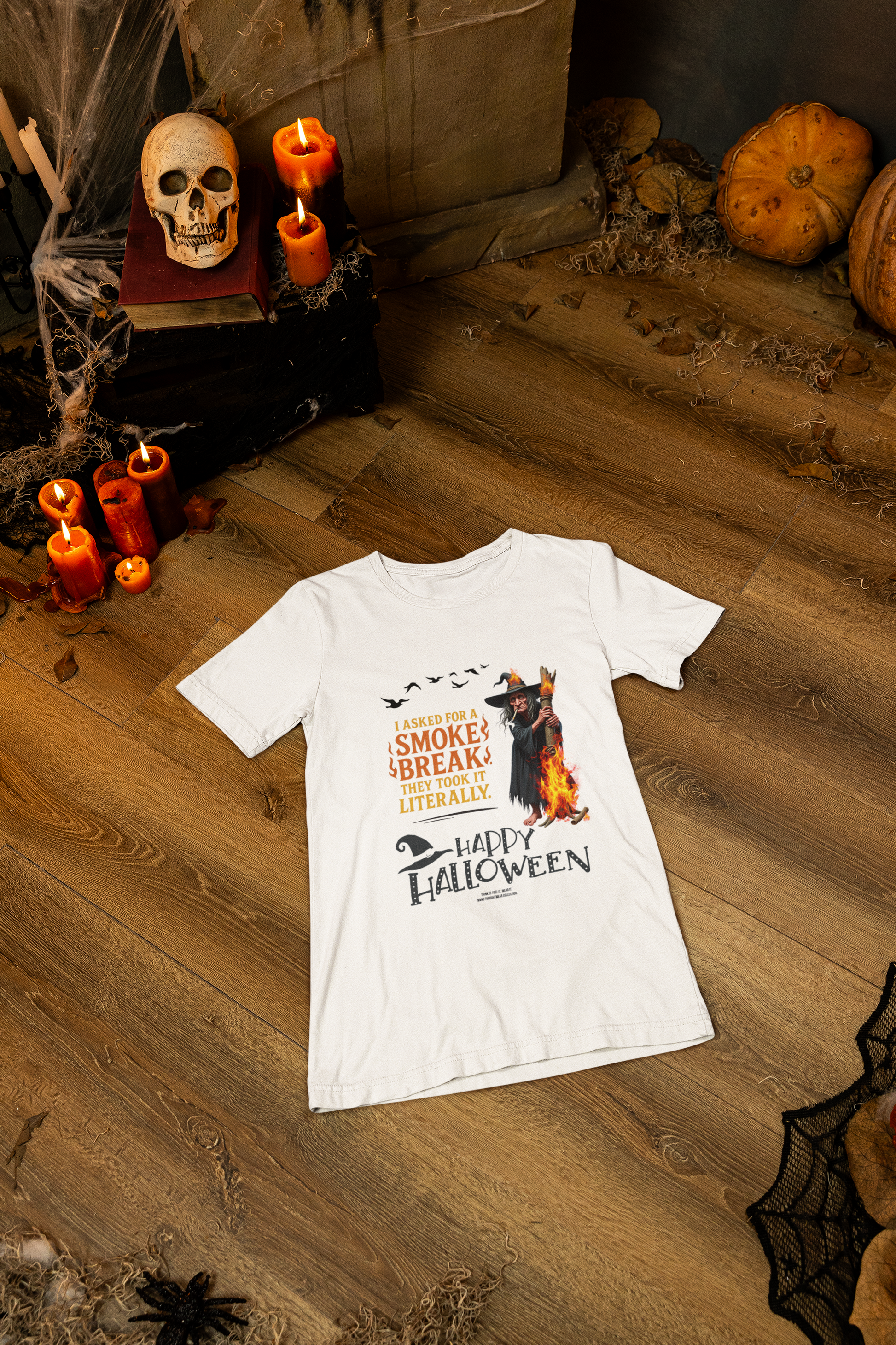Add some devilish humor to your Halloween look with this "I asked for a smoke break, they took it literally" design. Perfect for parties, spooky nights, or anyone with a penchant for dark humor. Made of high-quality material for comfort and durability. A unique gift for Halloween fans with a witty twist.