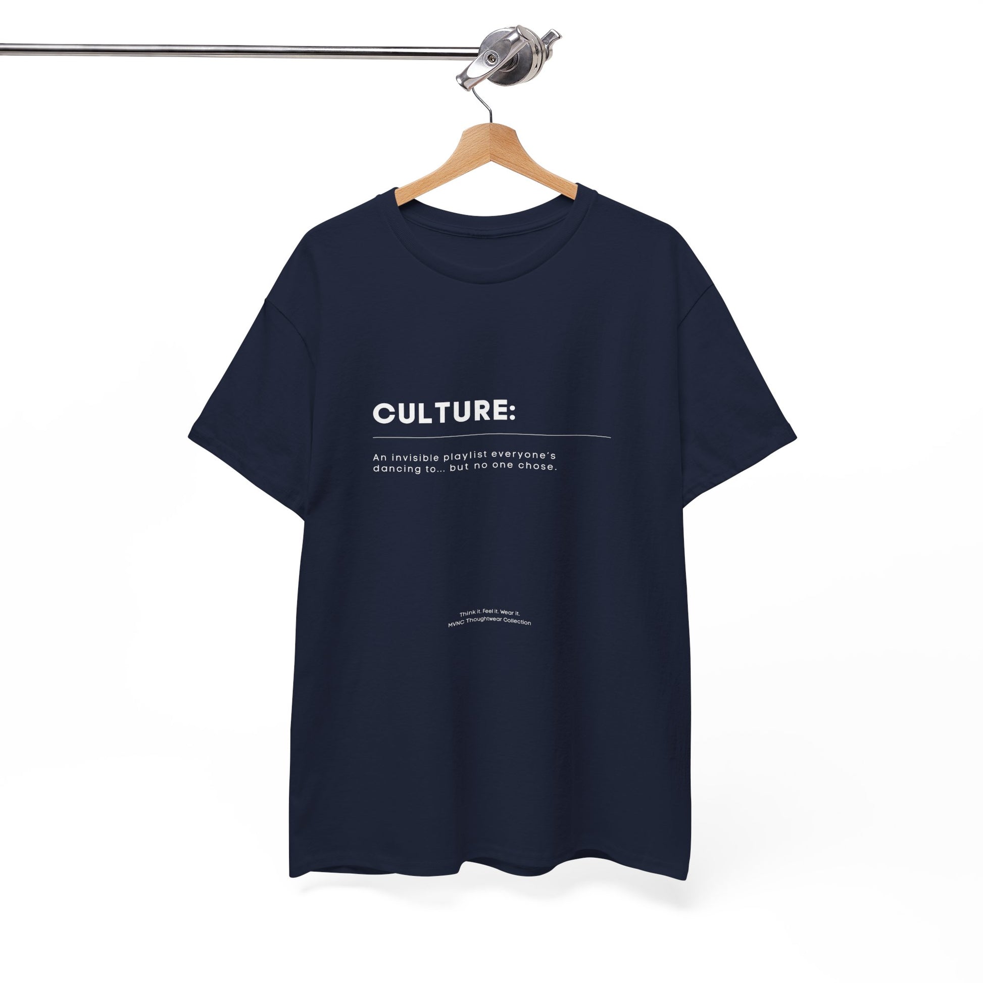 Laat je stijl spreken met deze minimalistische CULTURE: T-shirt. Een subtiele maar krachtige boodschap die de onzichtbare sociale dans van onze cultuur blootlegt – met een vleugje ironie. Perfect voor wie houdt van filosofie, humor en design in één.