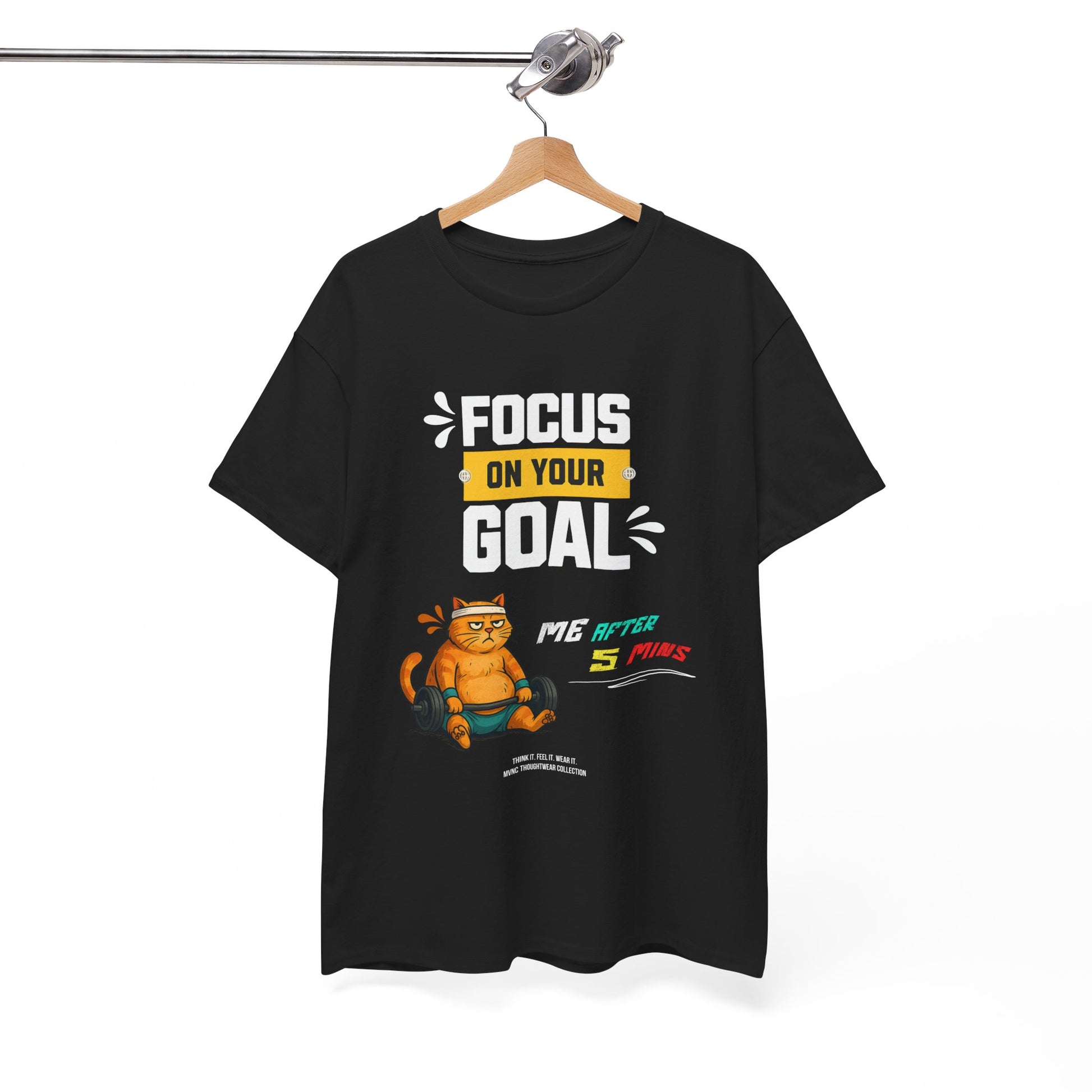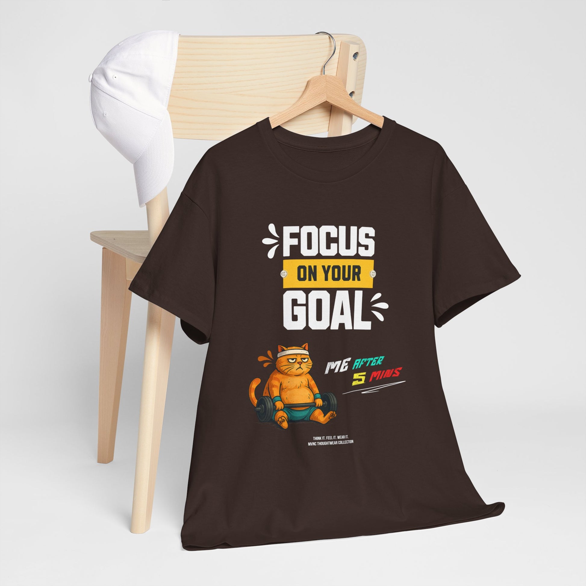 Focus on Your Goal – Motivatie T-shirt met Sportieve Kat