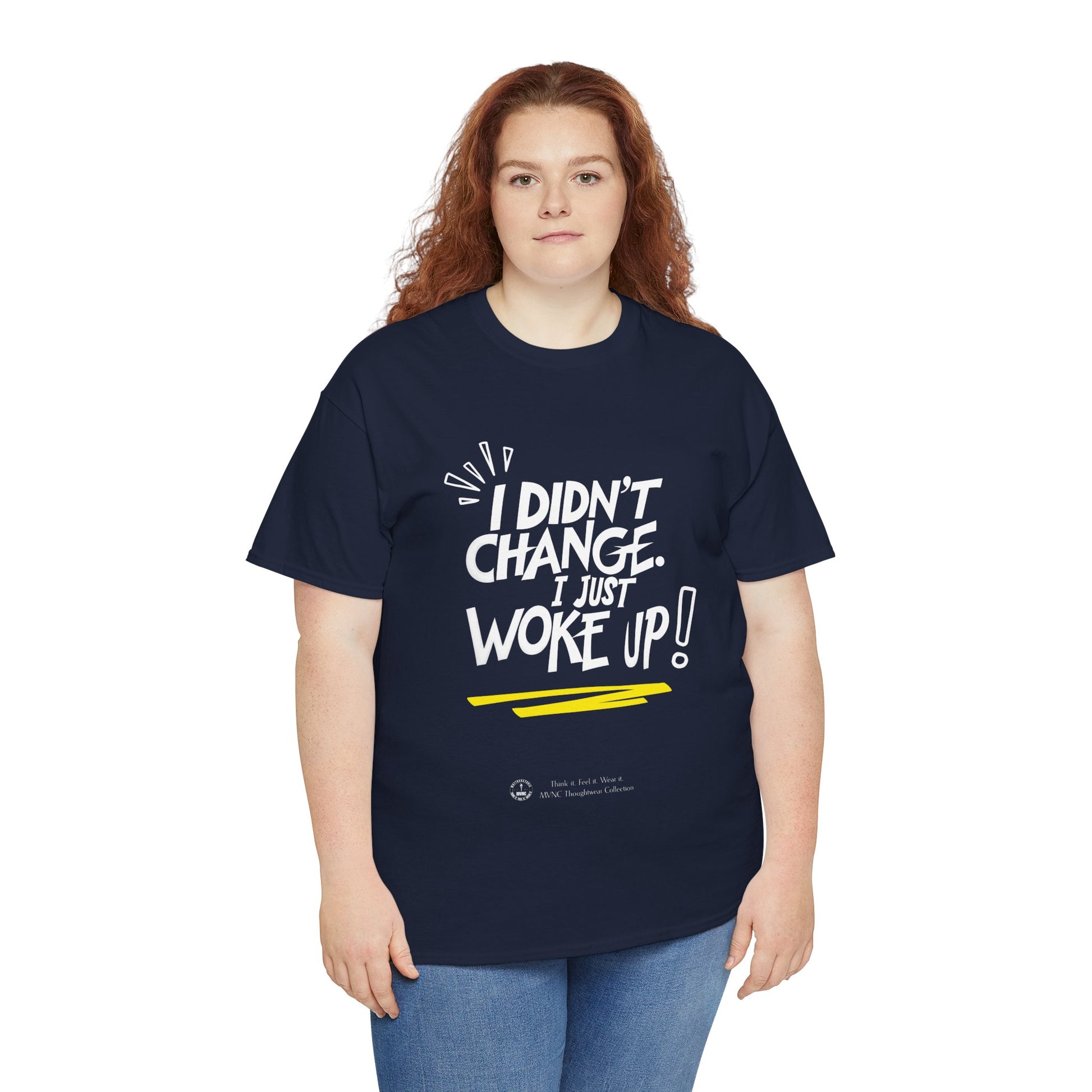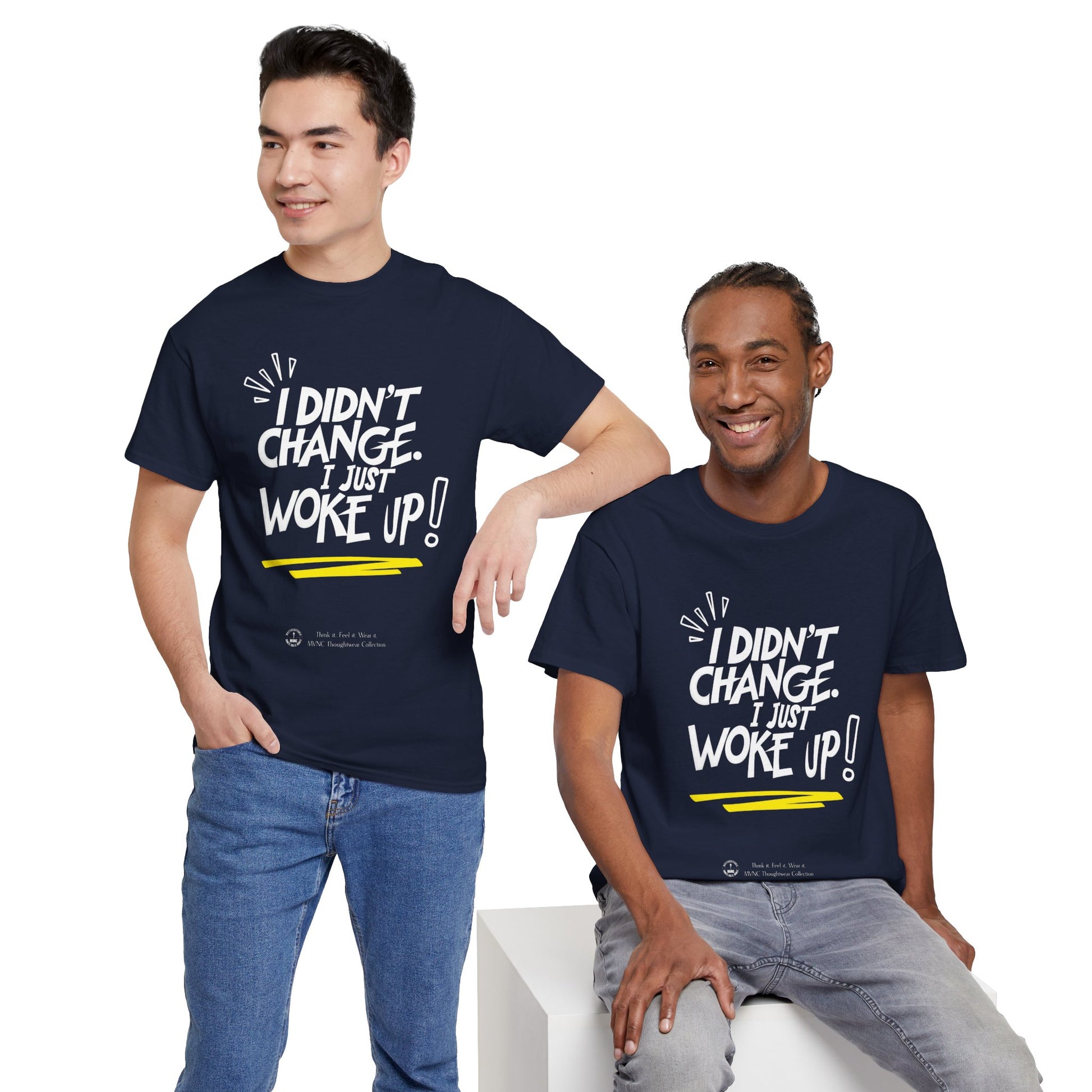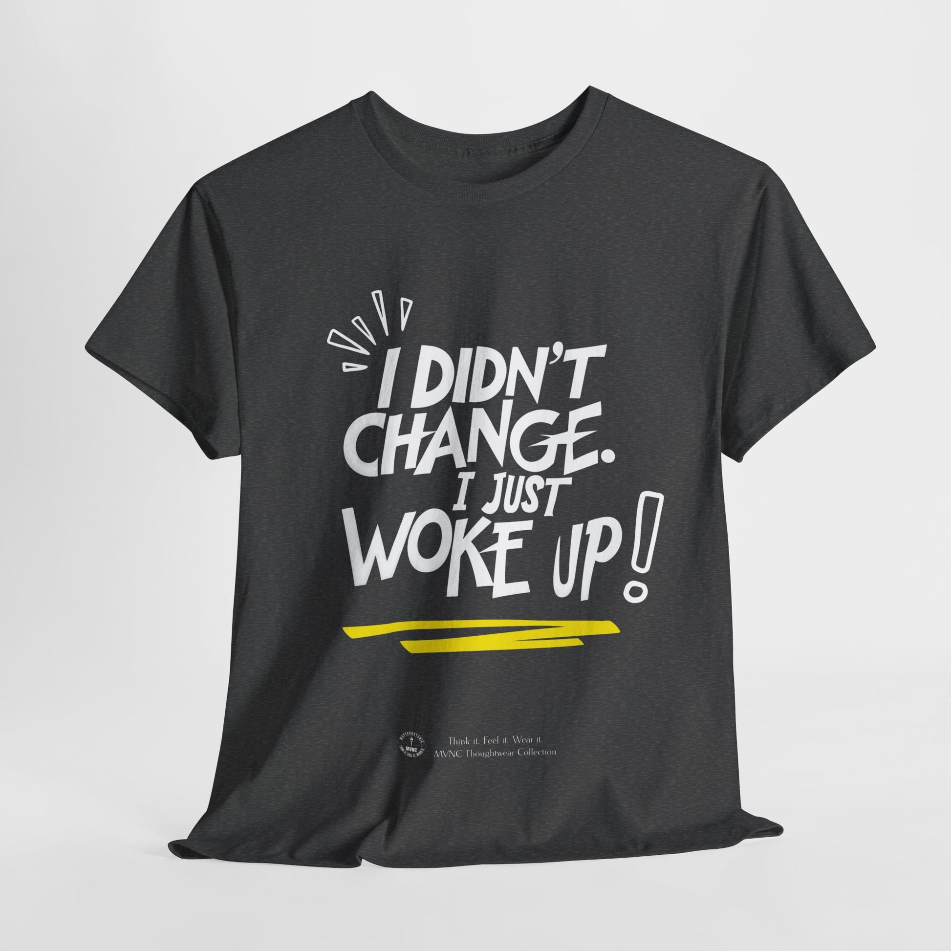 Comfortabele en relaxte Unisex Heavy Cotton T-shirt met het ontwerp 'Ik ben net wakker geworden'.