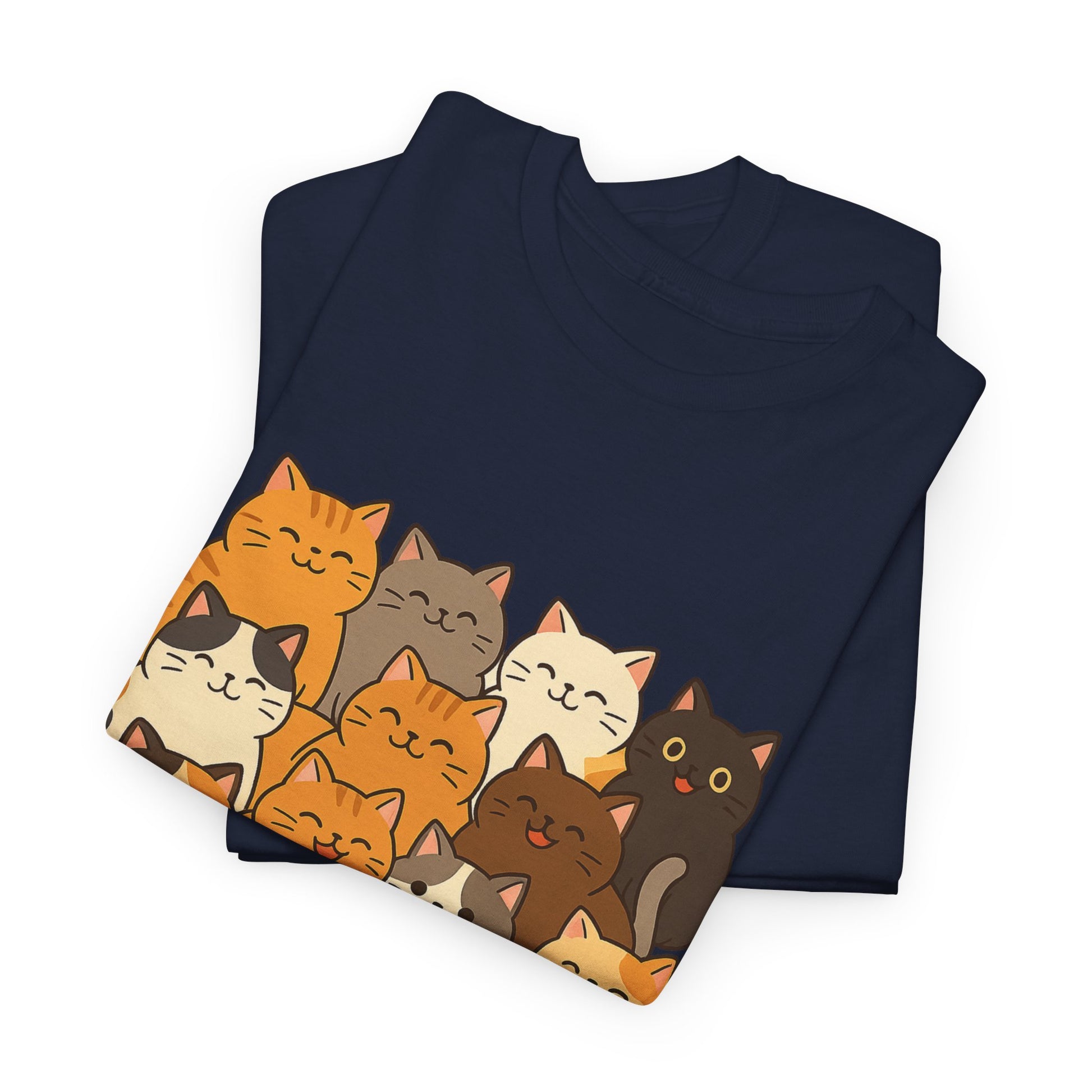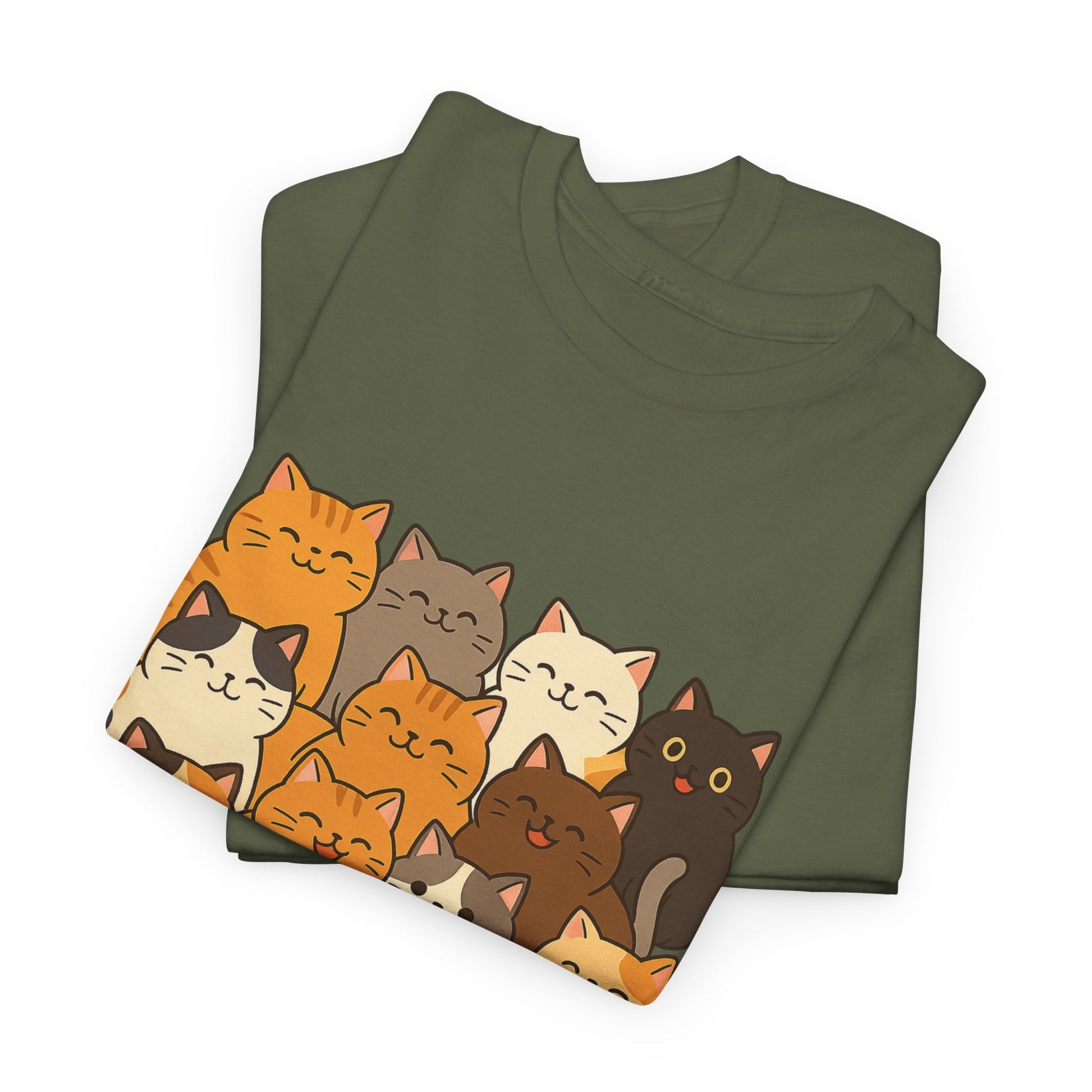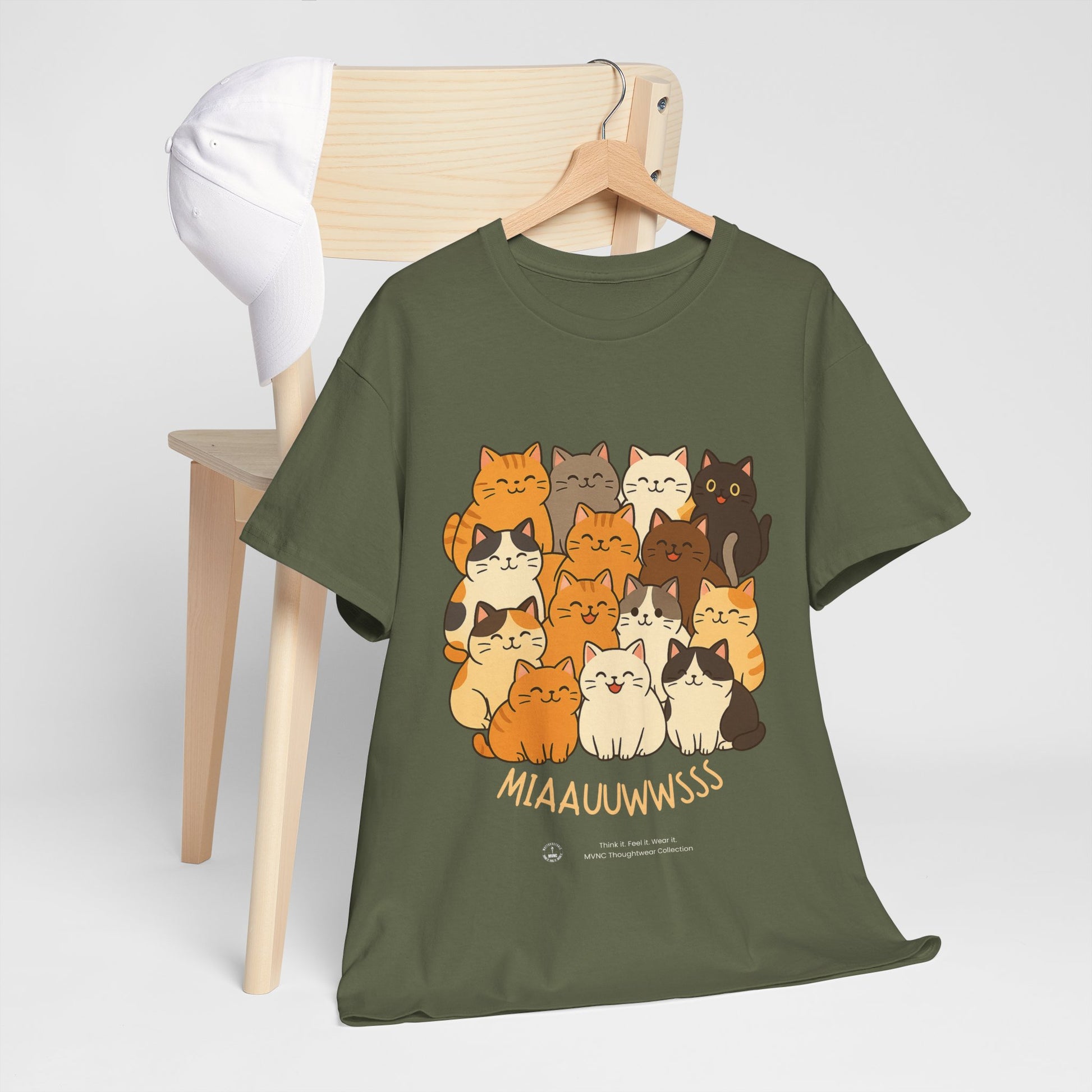 Breng een glimlach op ieders gezicht met dit schattige én grappige katten T-shirt! Het ontwerp toont een gezellige groep pluizige katten in warme kleuren, met daaronder de speelse tekst ‘Mlaaauwwsss’. Perfect voor casual outfits, dierenliefhebbers of als uniek geschenk. Of het nu voor een verjaardag, feestdag of gewoon zomaar is, dit shirt is een echte blikvanger voor iedere kattenfan.