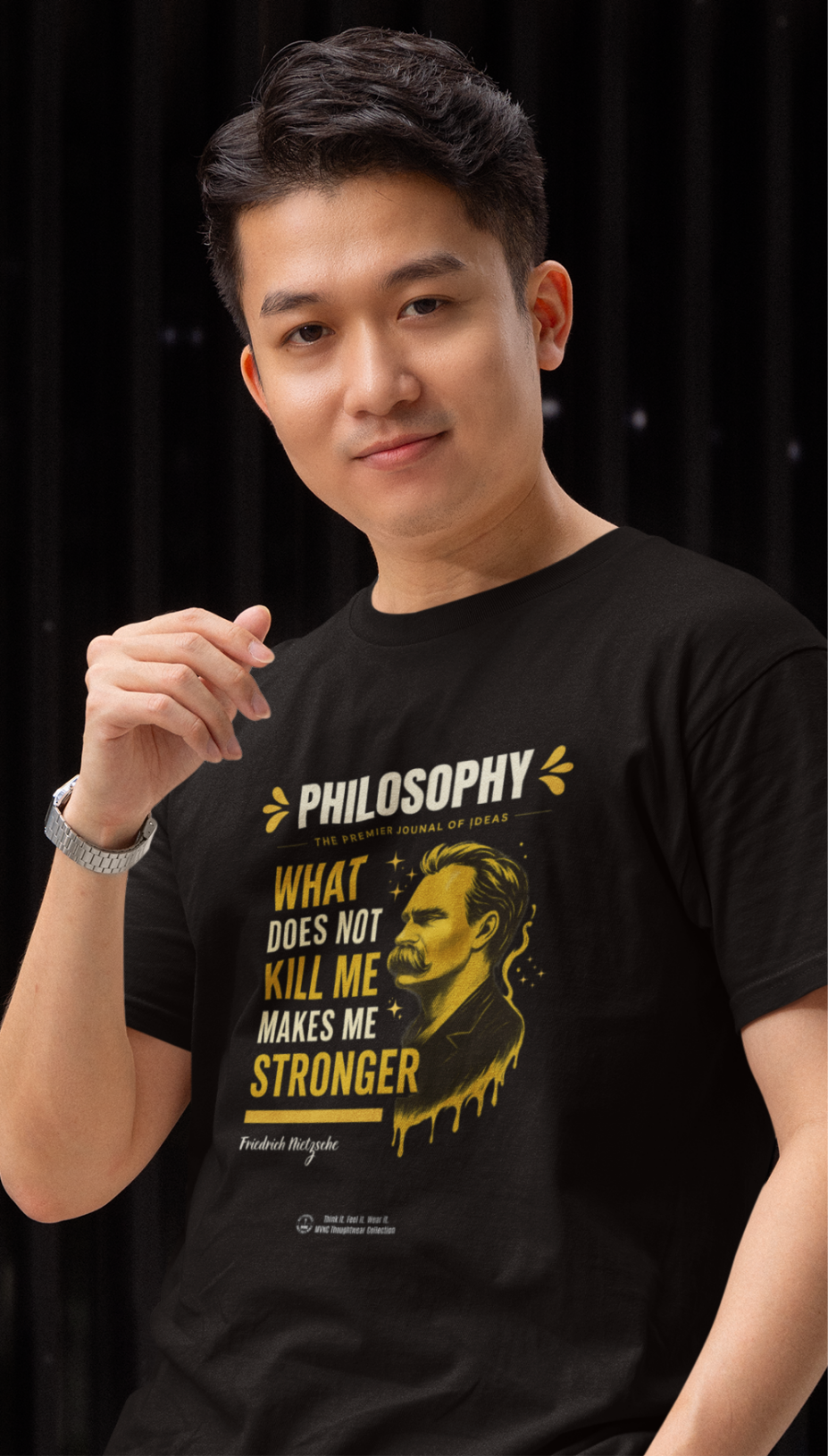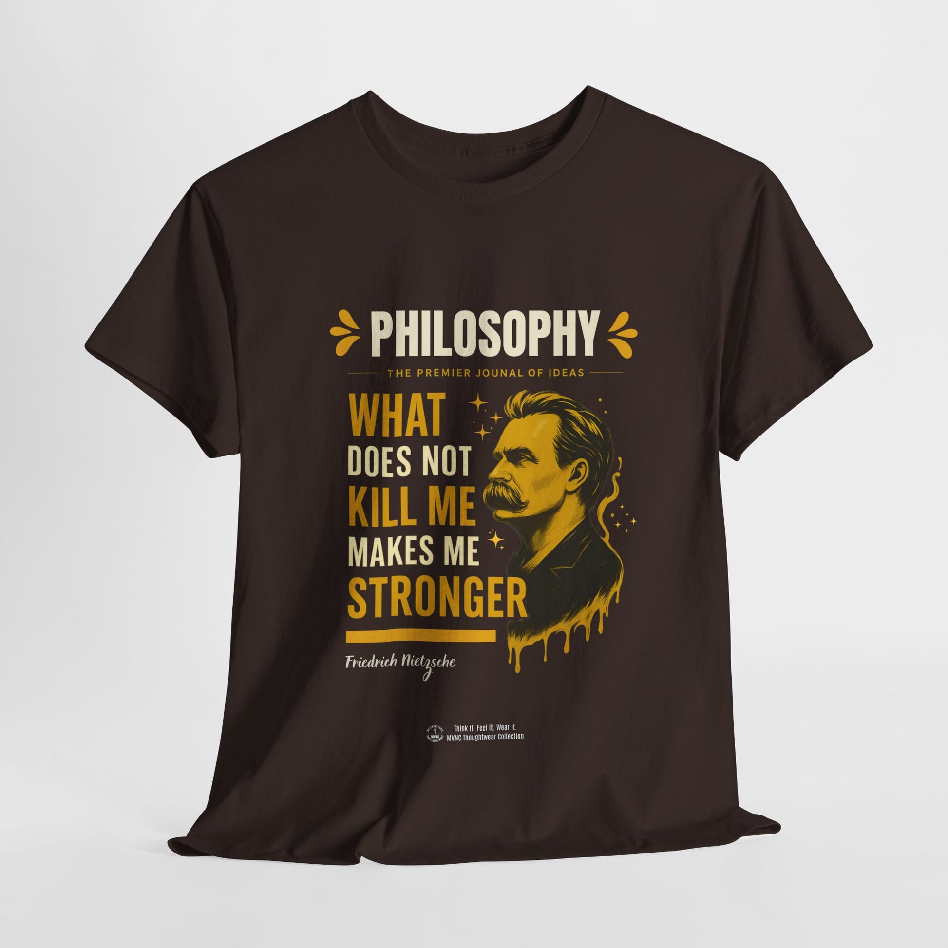 Nietzsche T-shirt – “Wat mij niet doodt” – Krachtig ontwerp met filosofische inspiratie