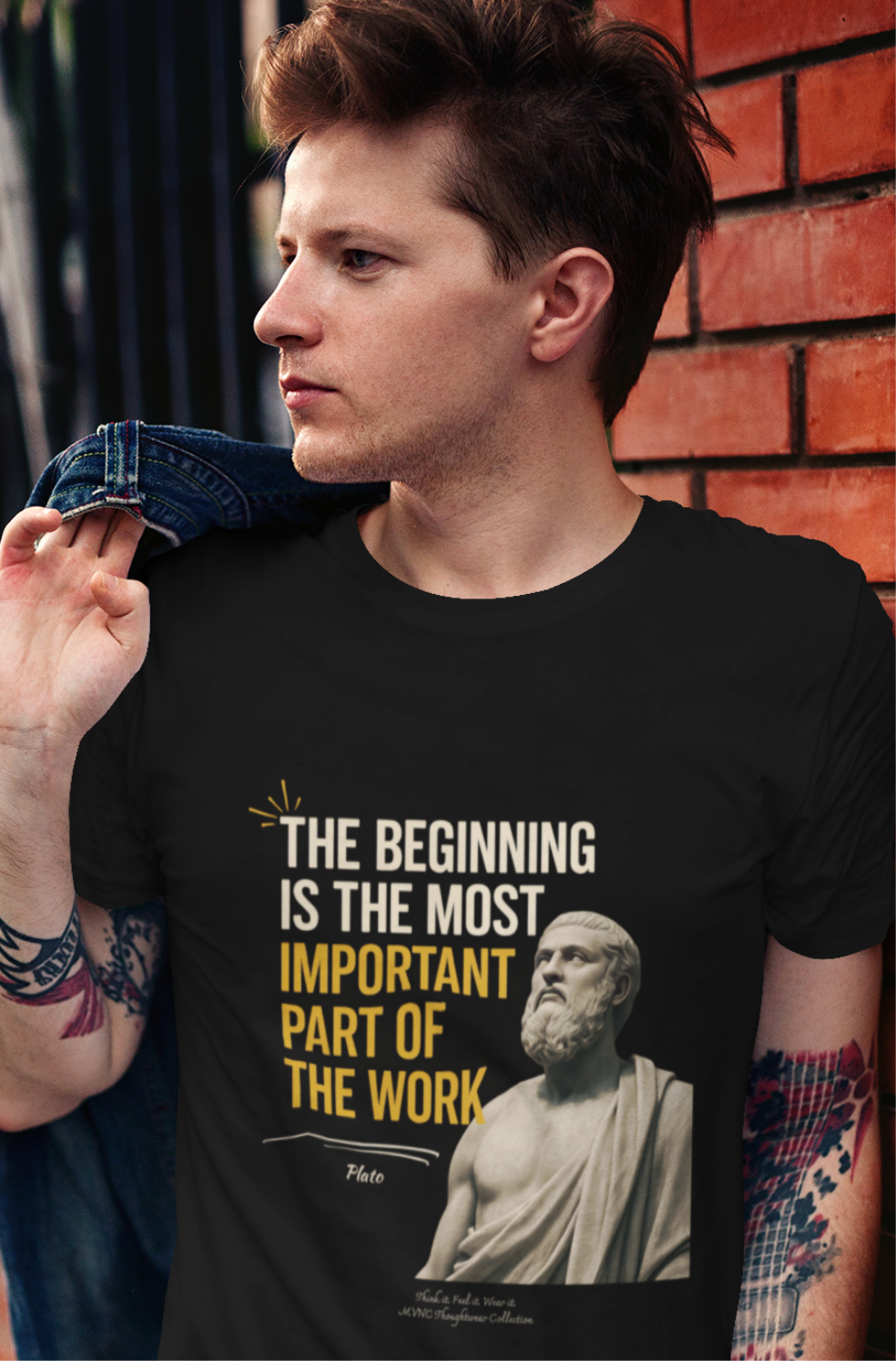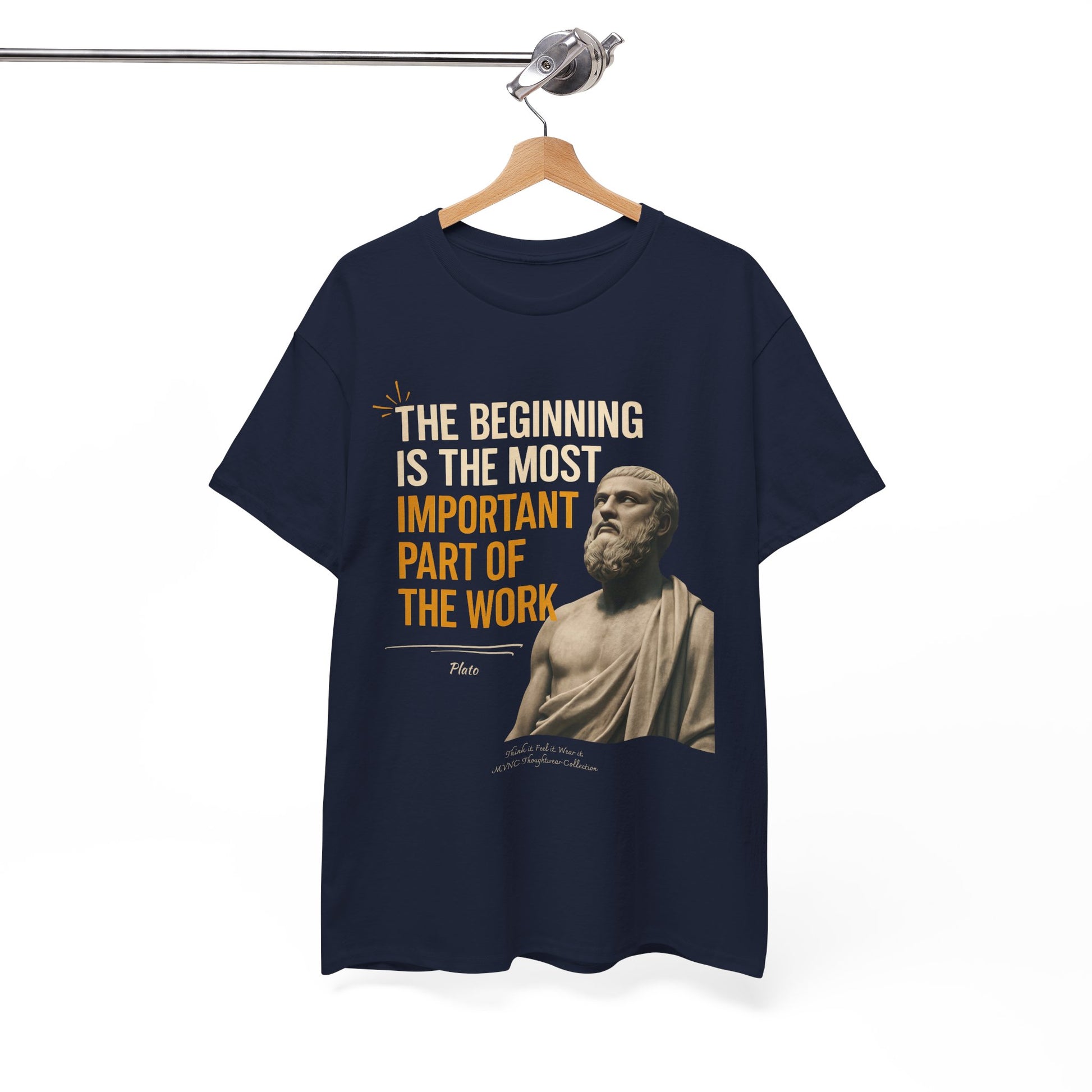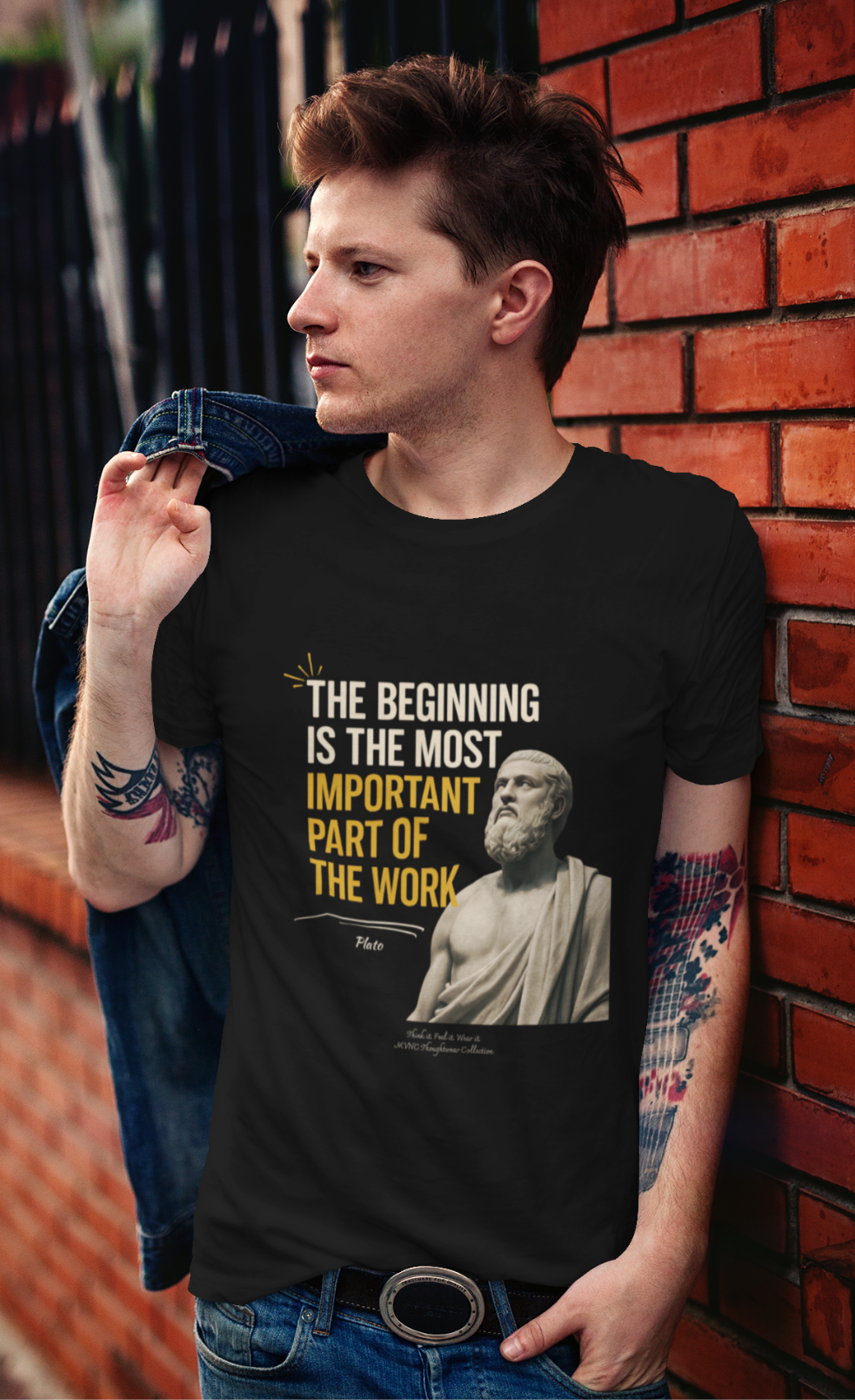 Dit premium T-shirt draagt de tijdloze wijsheid van Plato: