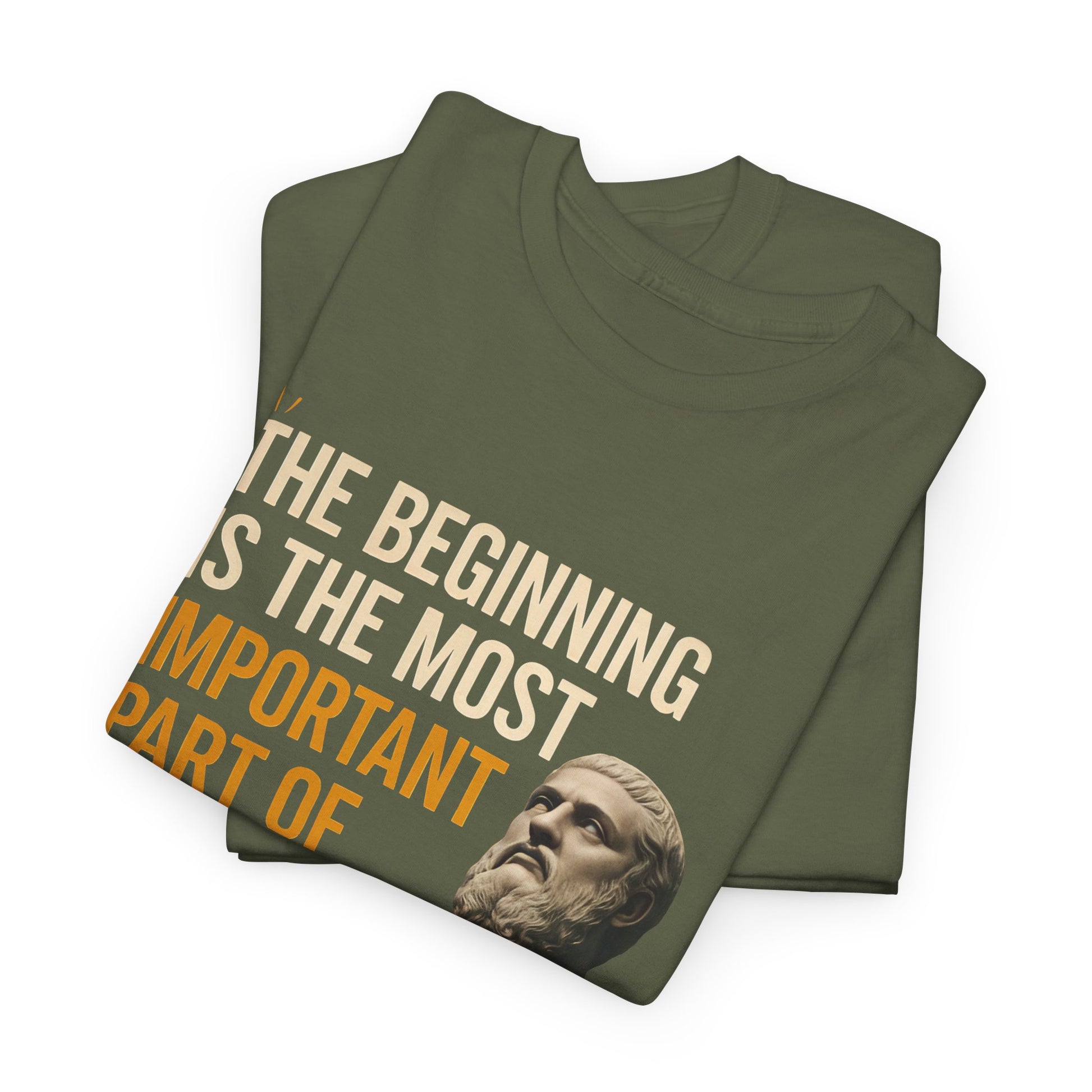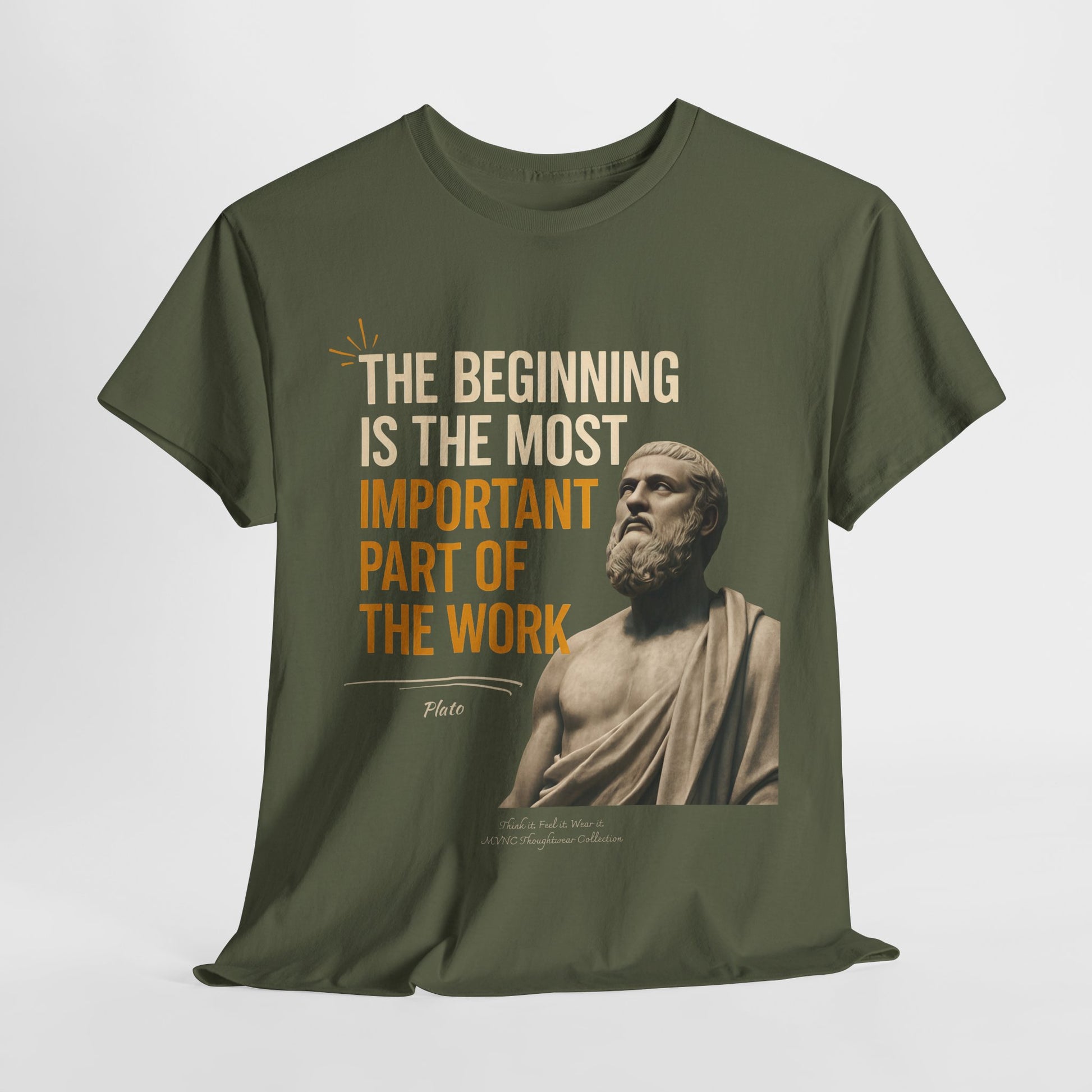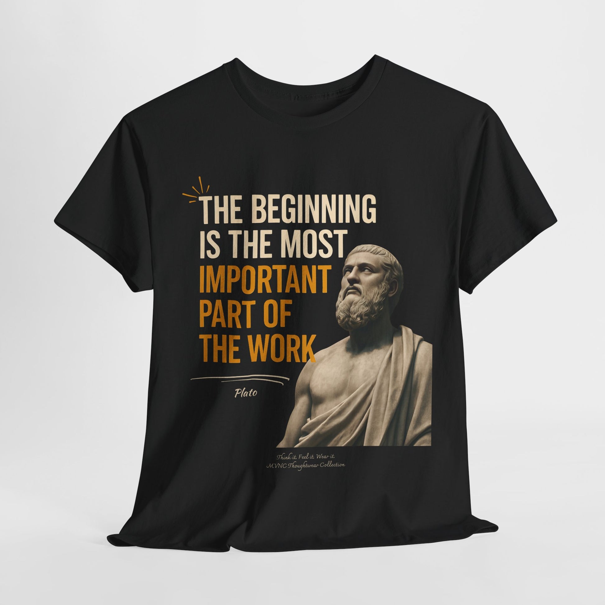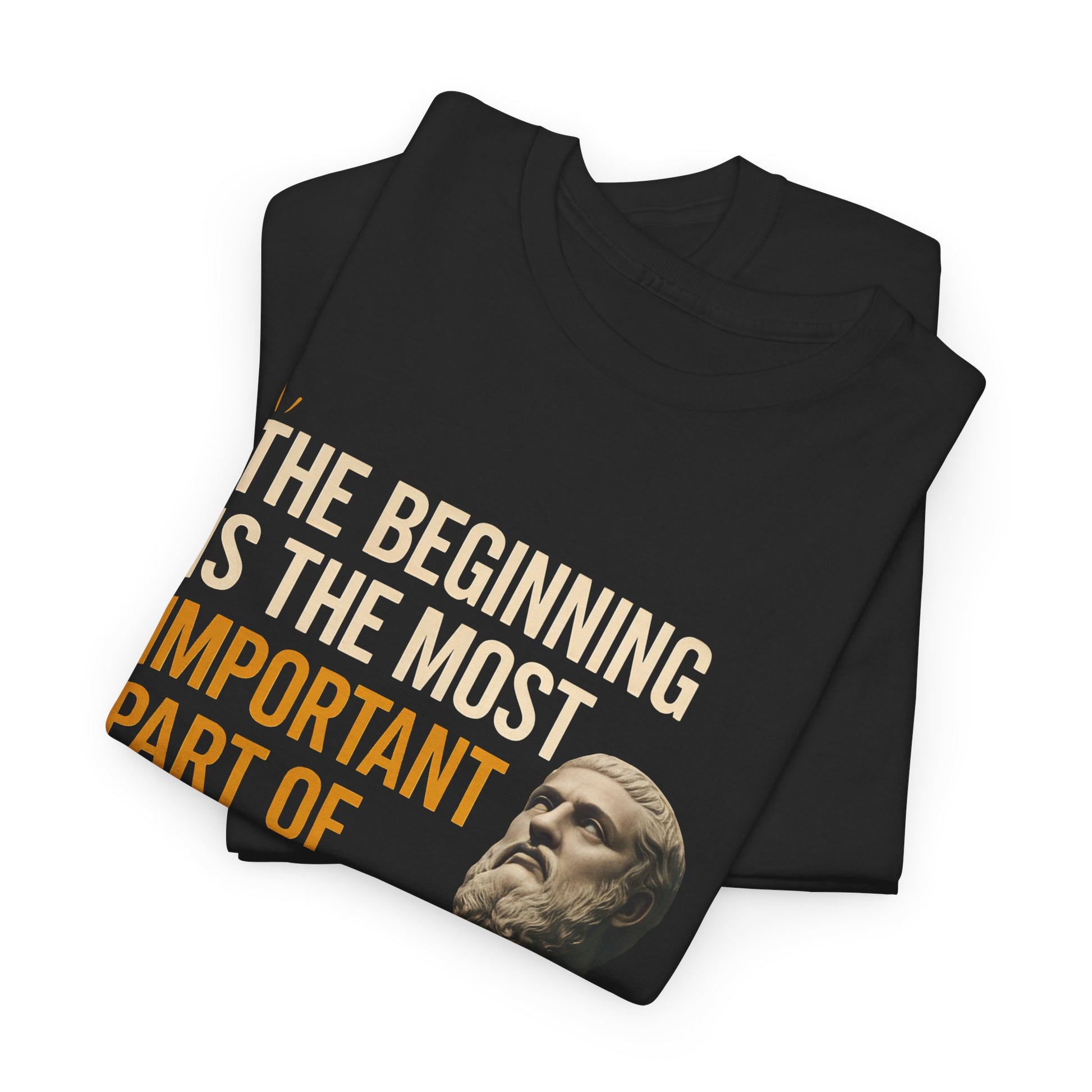 Dit premium T-shirt draagt de tijdloze wijsheid van Plato:
